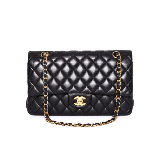 CHANEL Cla ssic Flap Medium Black Lambskin Leather Gold Hardware