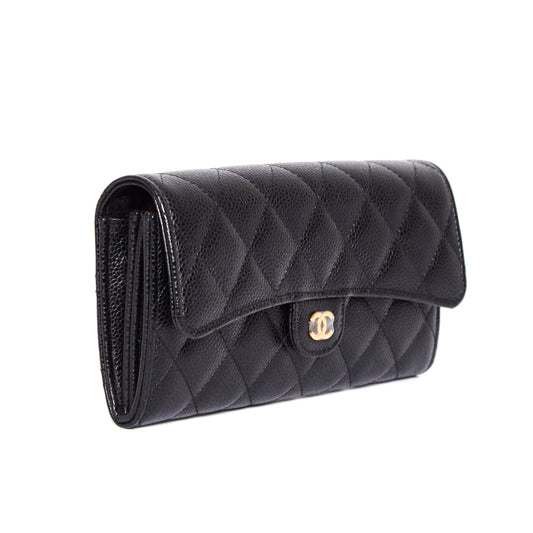 CHANEL Classic Black Caviar Long Flap Wallet Black