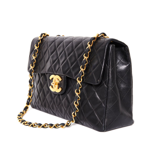 CHANEL Vintage Jumbo Black Lambskin Classic Single Flap Bag