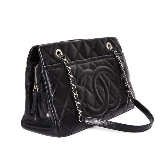 CHANEL Matelasse CC Timeless Tote Bag Black Caviar Leather