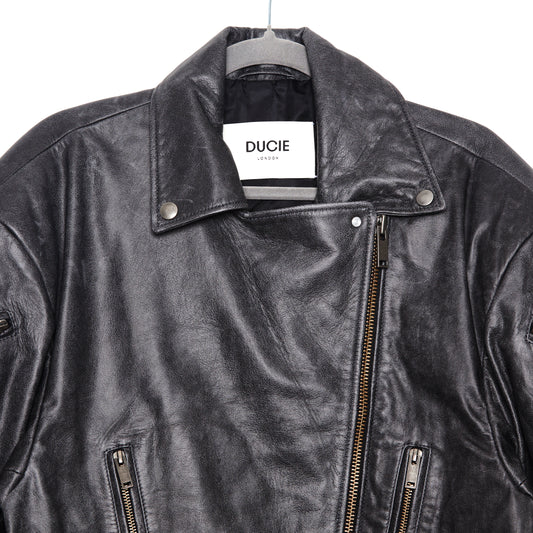 DUCIE LONDON Samantha Distressed Leather Biker Jacket