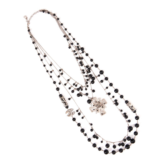 CHANEL Maltese Cross Crystal CC Bead Necklace Silver