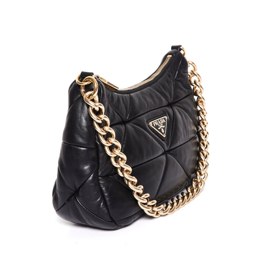 PRADA System Padded Black Nappa Shoulder Bag with Gold Hardware