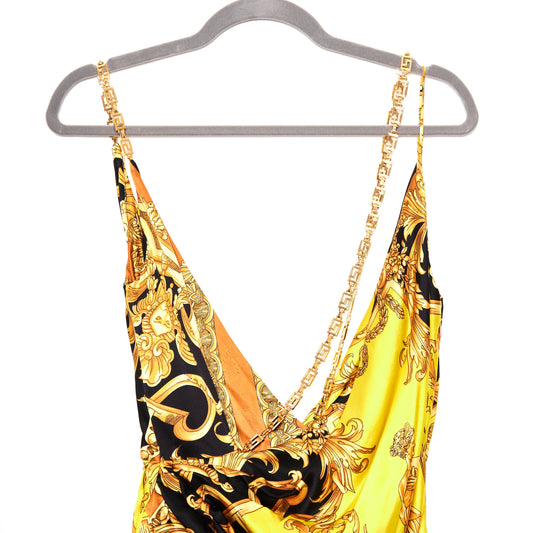 VERSACE Draped Barocco-Print Chain Strap Dress 8-10