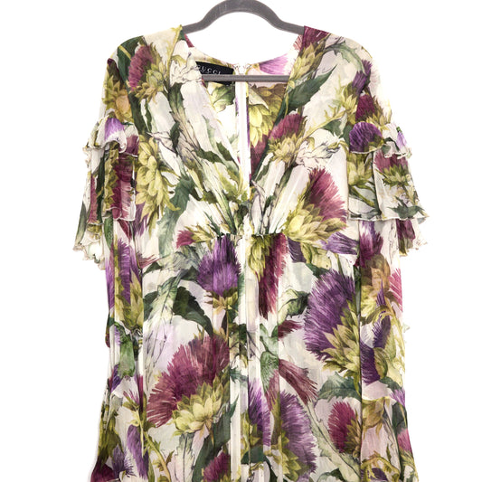 GUCCI Silk Thistle Print Dress 42