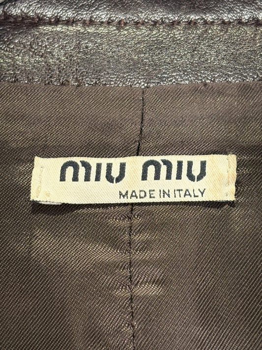 MIU MIU Chocolate Brown Leather Moto Jacket