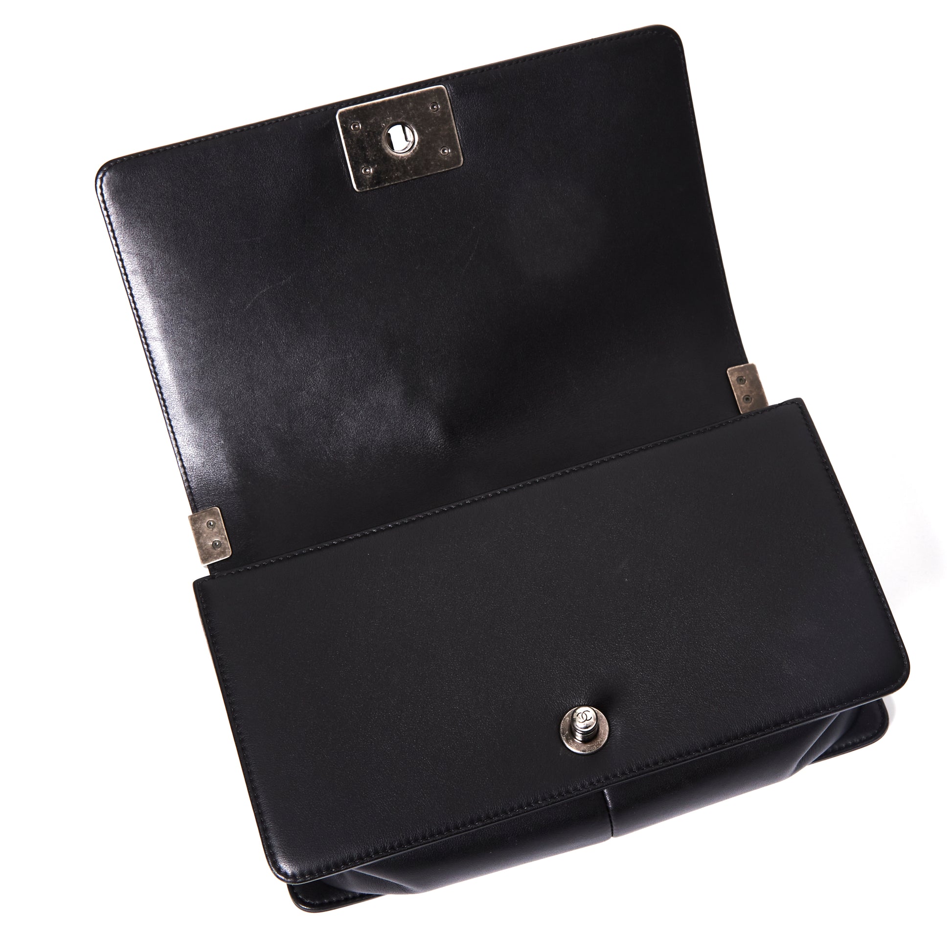 CHANEL Black Lambskin Quilted Old Medium Boy Flap Bag