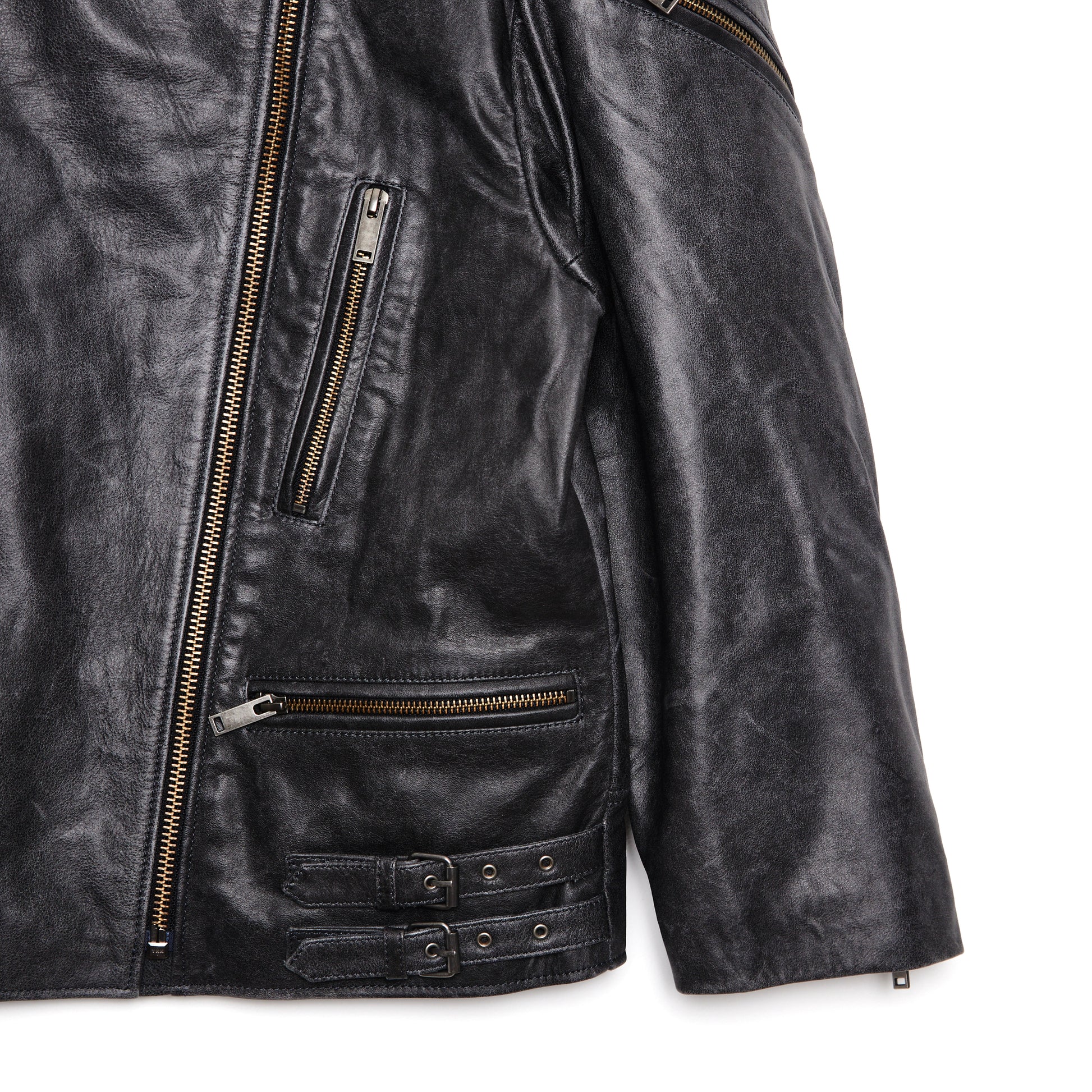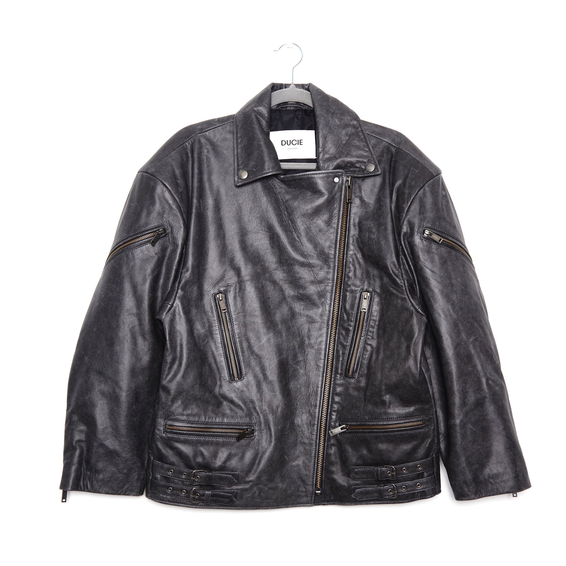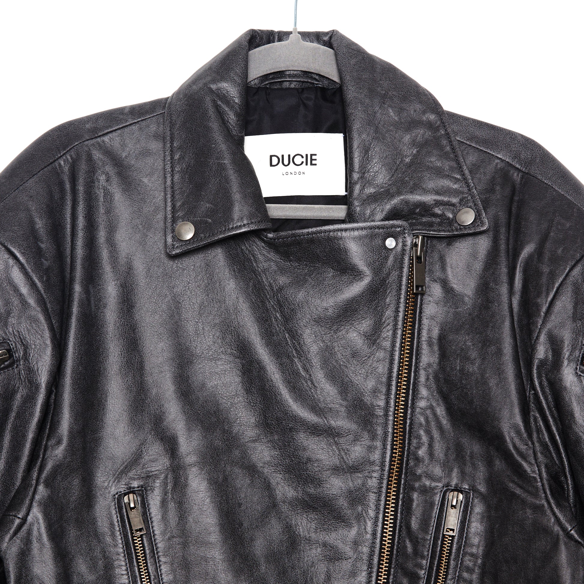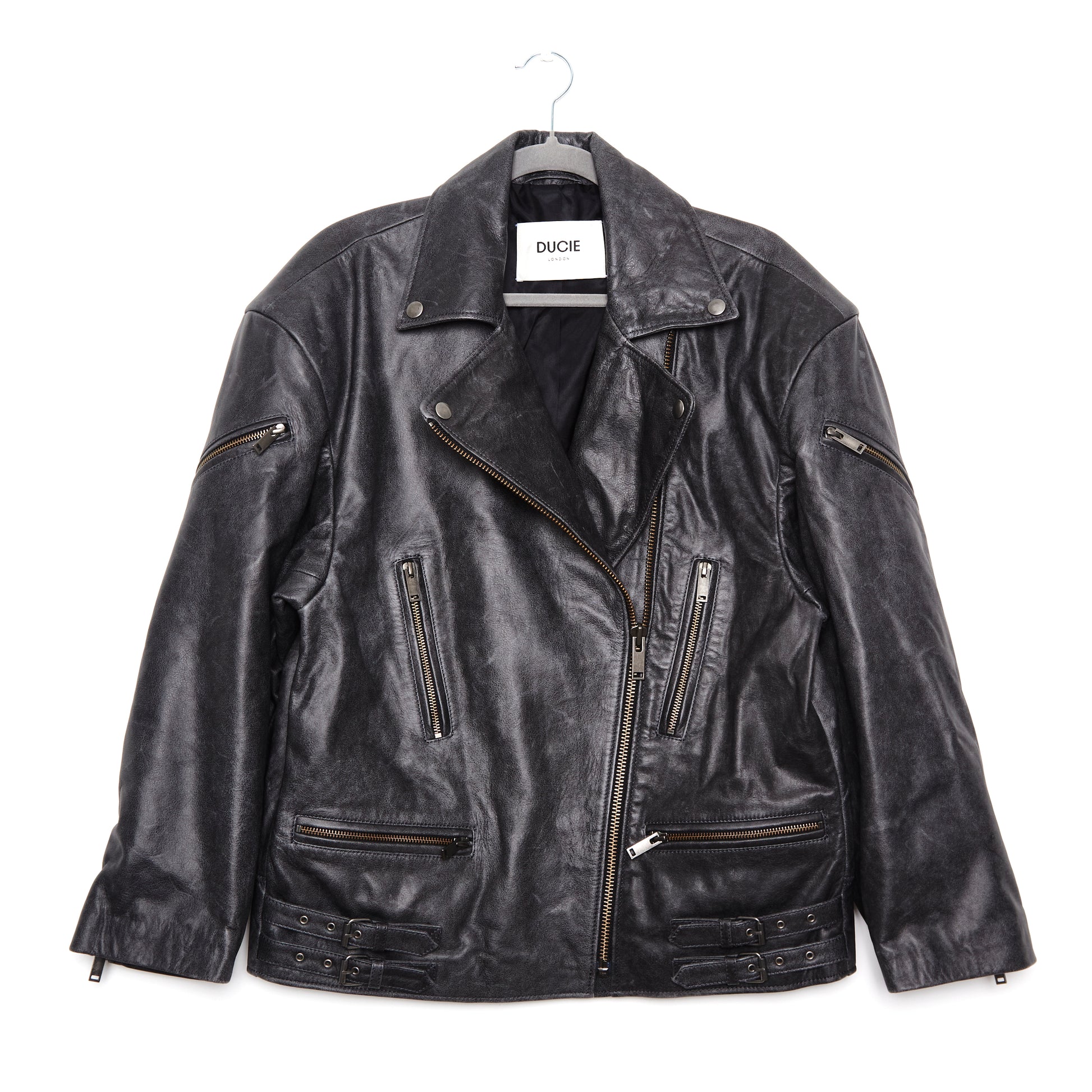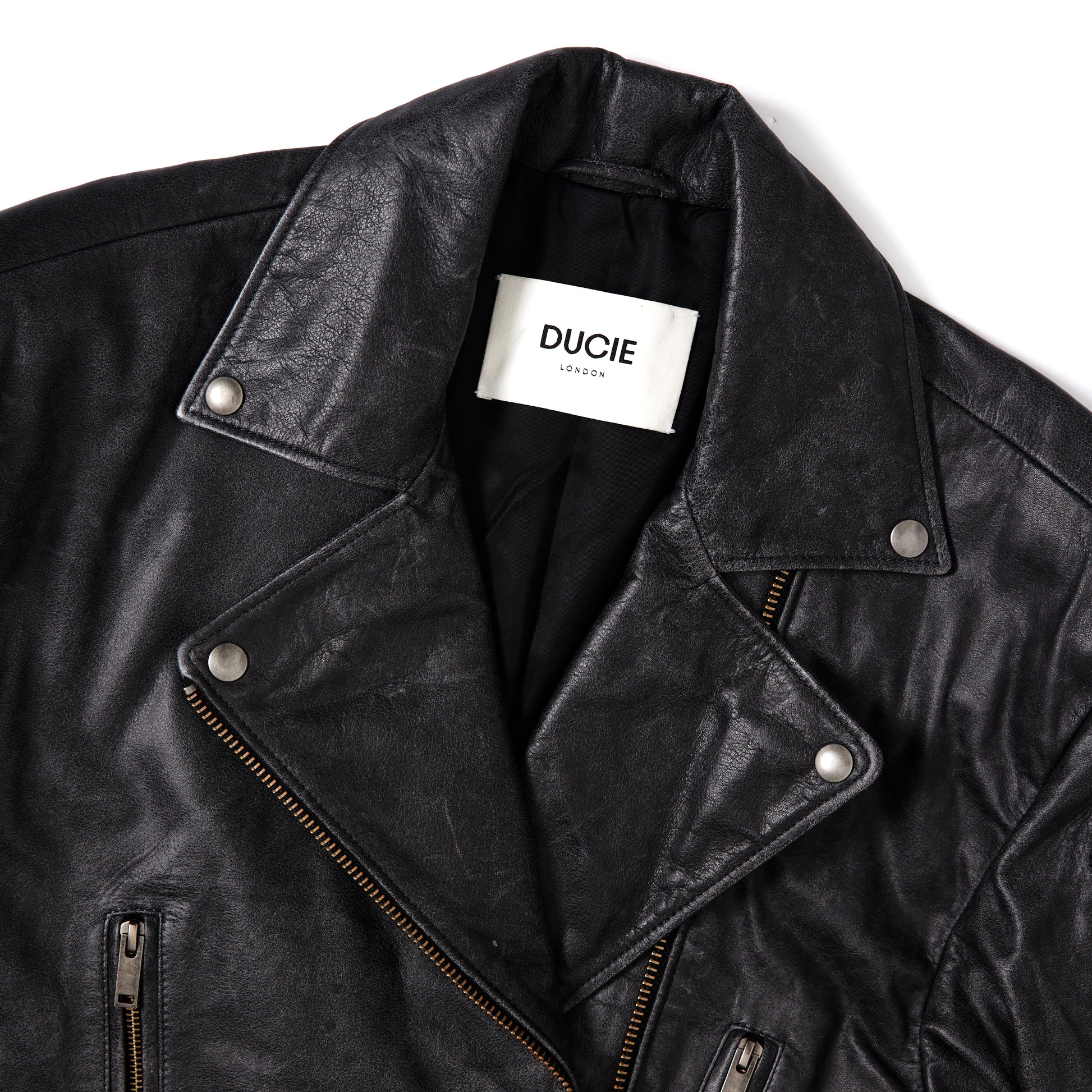 DUCIE LONDON Samantha Distressed Leather Biker Jacket