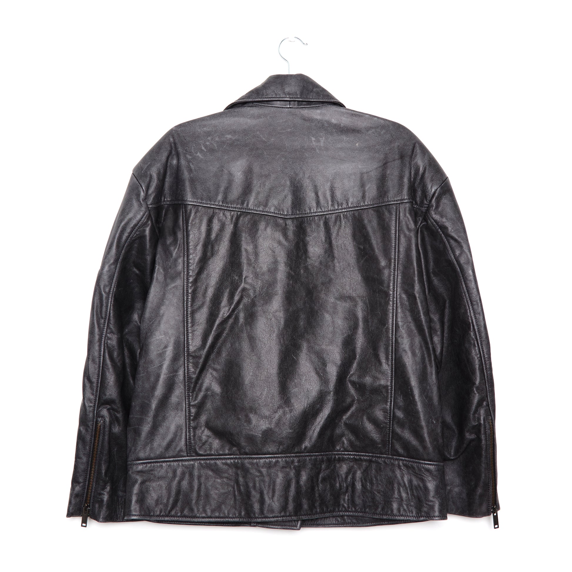 This generously cut jacket with drop shoulders and classic biker styling falls at a flattering length on the lower hip. Oversized for an effortless look.