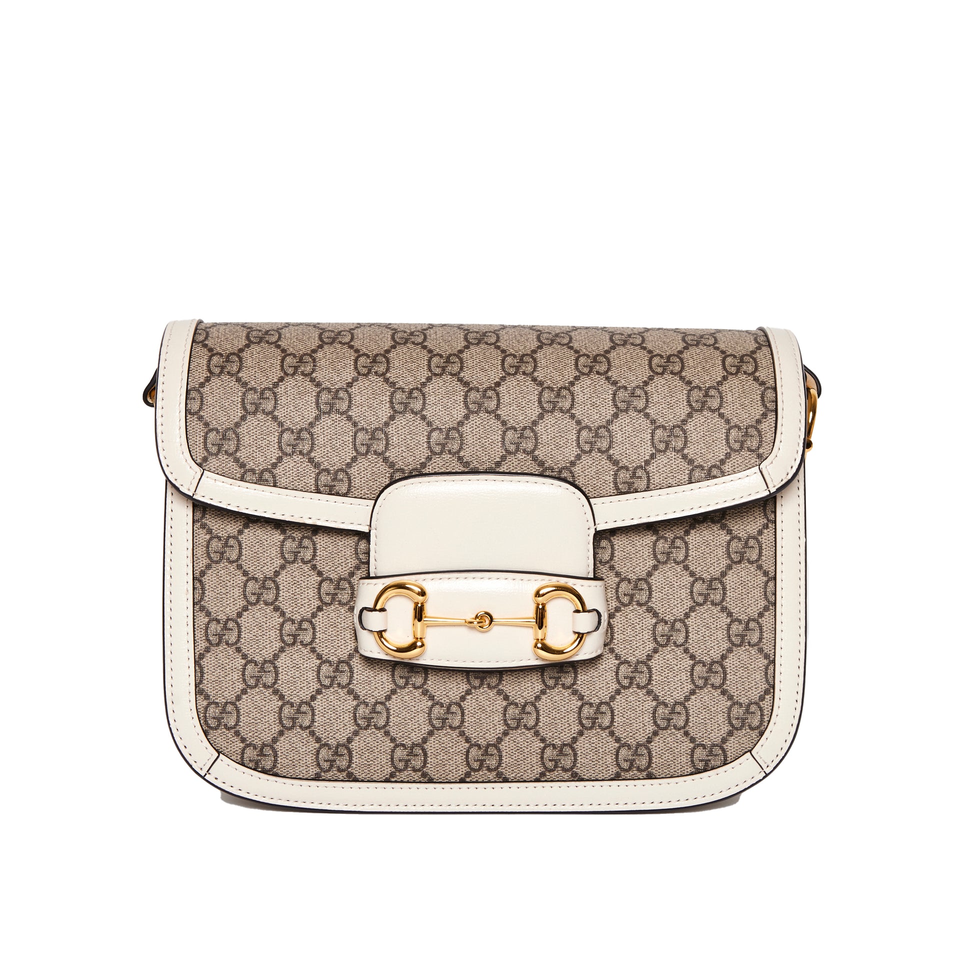 A Gucci Cream GG Supreme 1955 Horsebit Shoulder Bag. An amazing classic from 1955 GUCCI. This brilliant design is easy relaxed elegance at its best. This gorgeous bag will look perfect with dressy or casual looks summer or winter. Absolutely perfect.