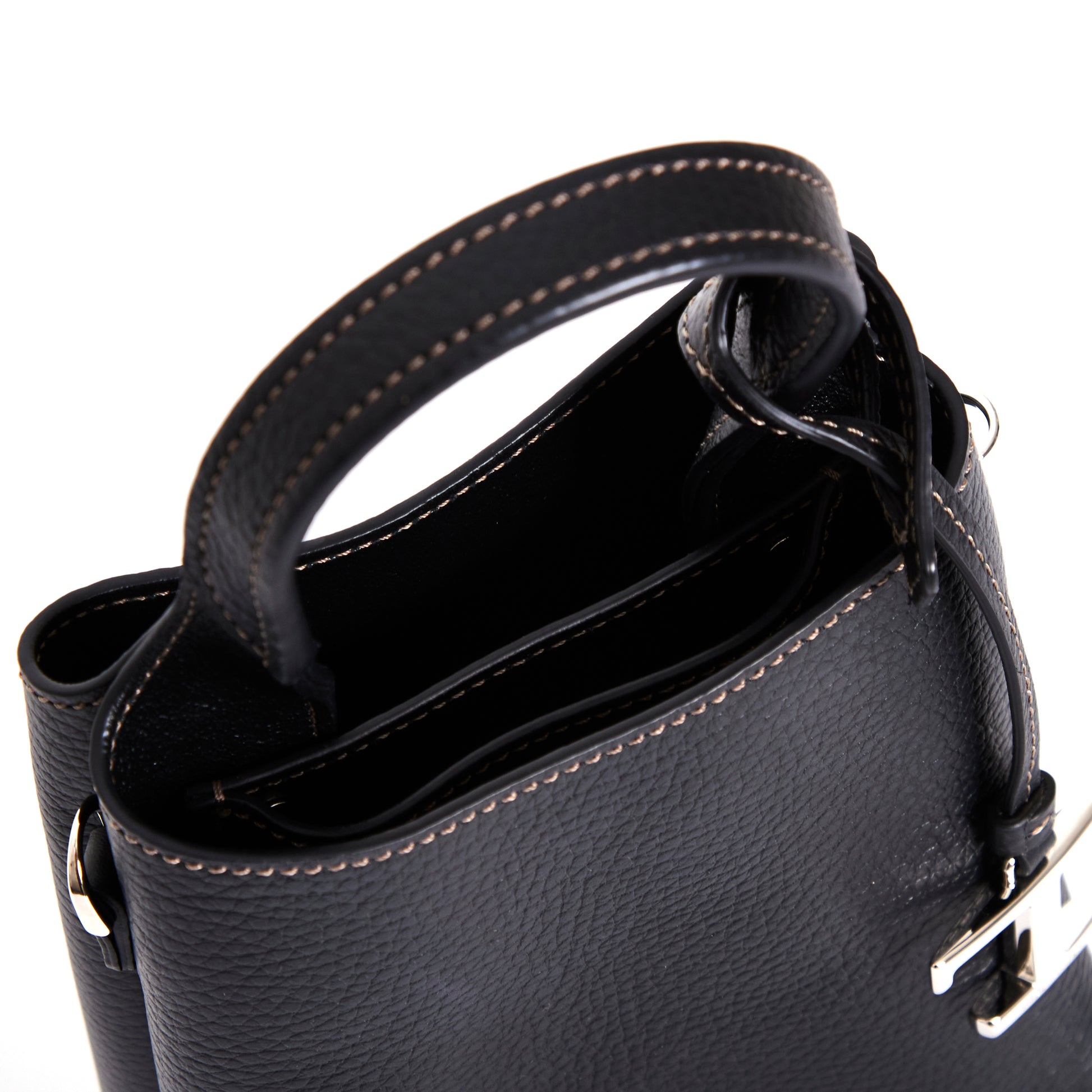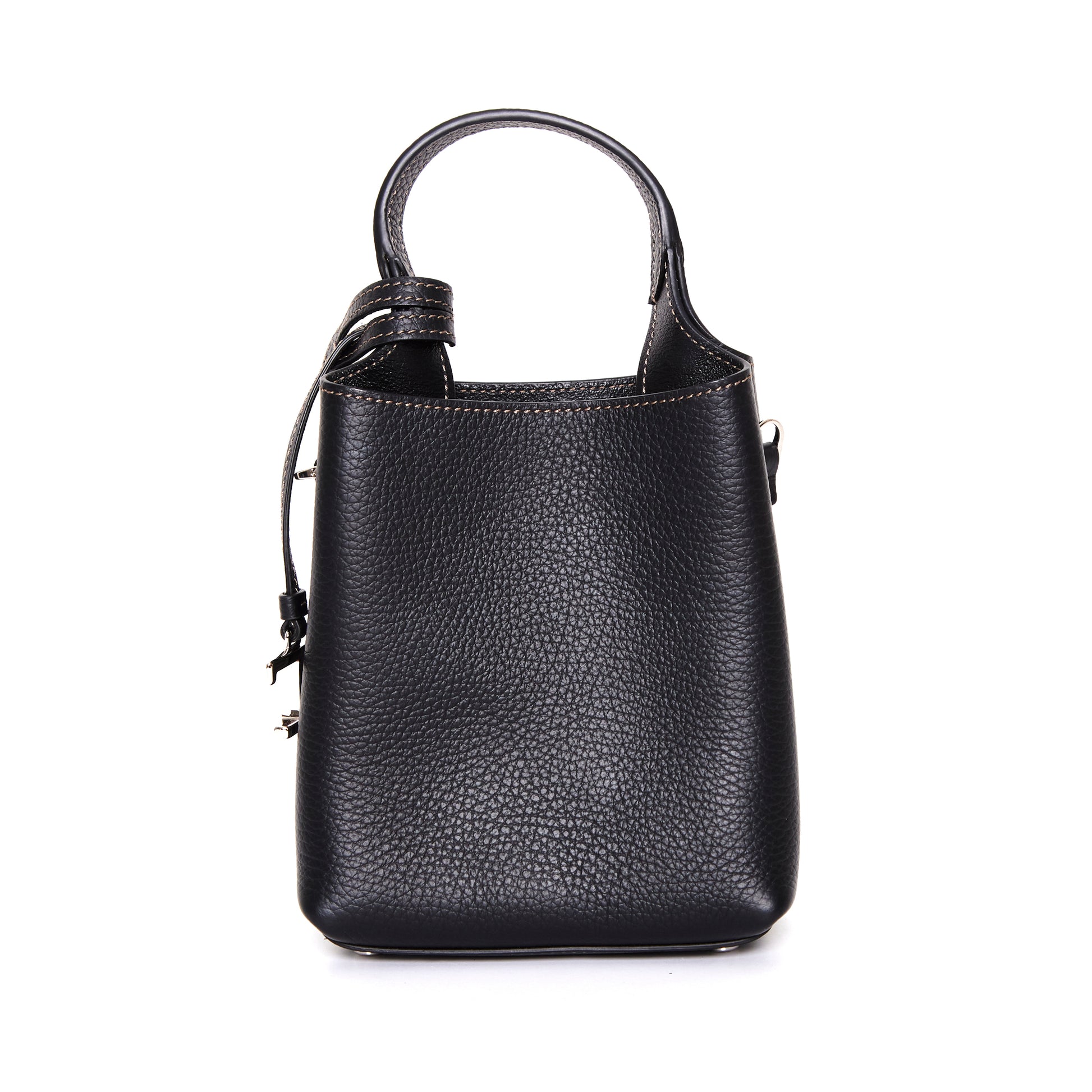 Timeless Designs, Hand-Crafted In Italy. Made In Italy Logo, Micro Leather Tote In Black Leather And Silver-Tone Hardware With Embossed Logo Interior Design